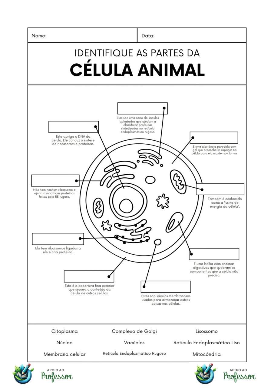 Ao final, você encontrará uma atividade educativa exclusiva para download, que ajudará os alunos a aplicar o que aprenderam sobre a célula animal de forma interativa e divertida.